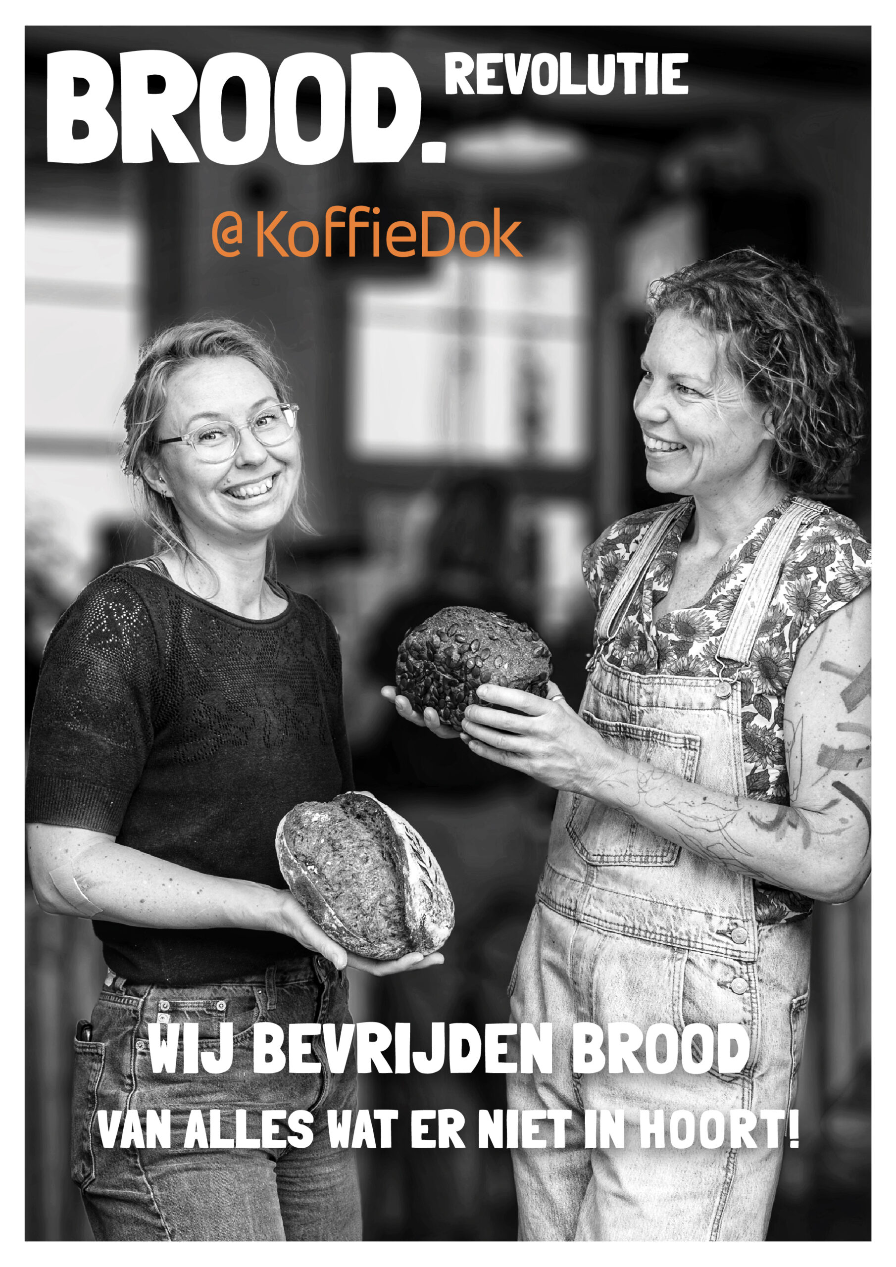 We zijn een kleine ambachtelijke desem-bakkerij in het Havenkwartier van Deventer. In de zomer van 2020 voorzichtig begonnen als popup koffiebar met als droom een plek te worden waar iedereen zich thuis voelt en graag komt. Het begon pas echt serieus te worden toen Jolien met Lotte kennis maakte en samen besloten de bakkerij uit te breiden. Samen met Annemiek en Gerben is de BROOD.revolutie @KoffieDok een prachtige plek aan het worden die ons uitdaagt, verrast en erg blij maakt. Sinds 4 jaar werken we elke dag om het lekkerste eten te bereiden, de beste koffie te zetten en het smakelijkste desembrood te bakken. In alles wat we doen heeft lokaal en biologisch de voorkeur, we hebben direct contact met onze leveranciers en betalen een eerlijke prijs. Samen veranderen we het voedselsysteem!